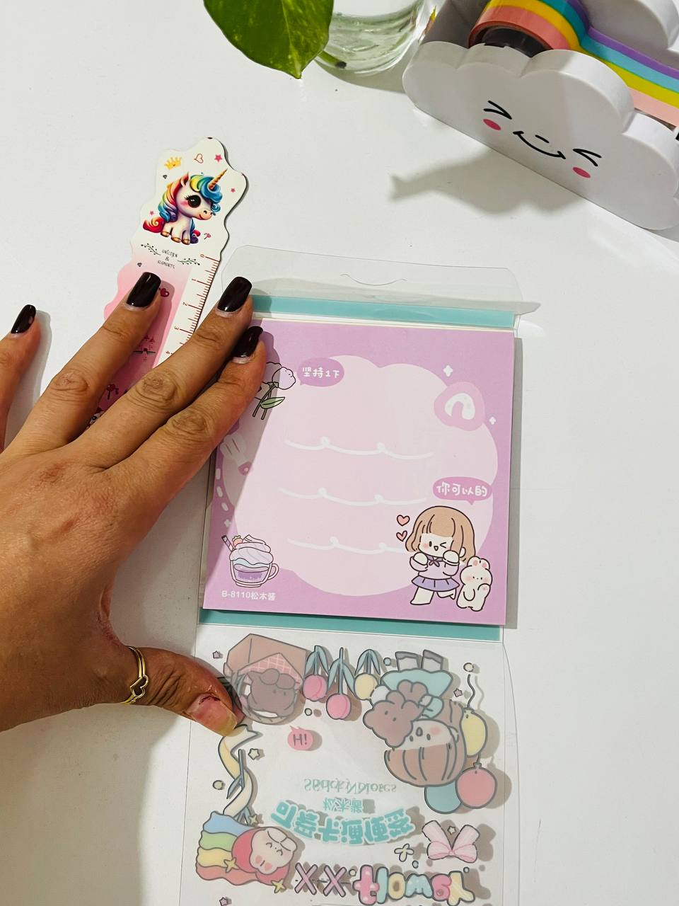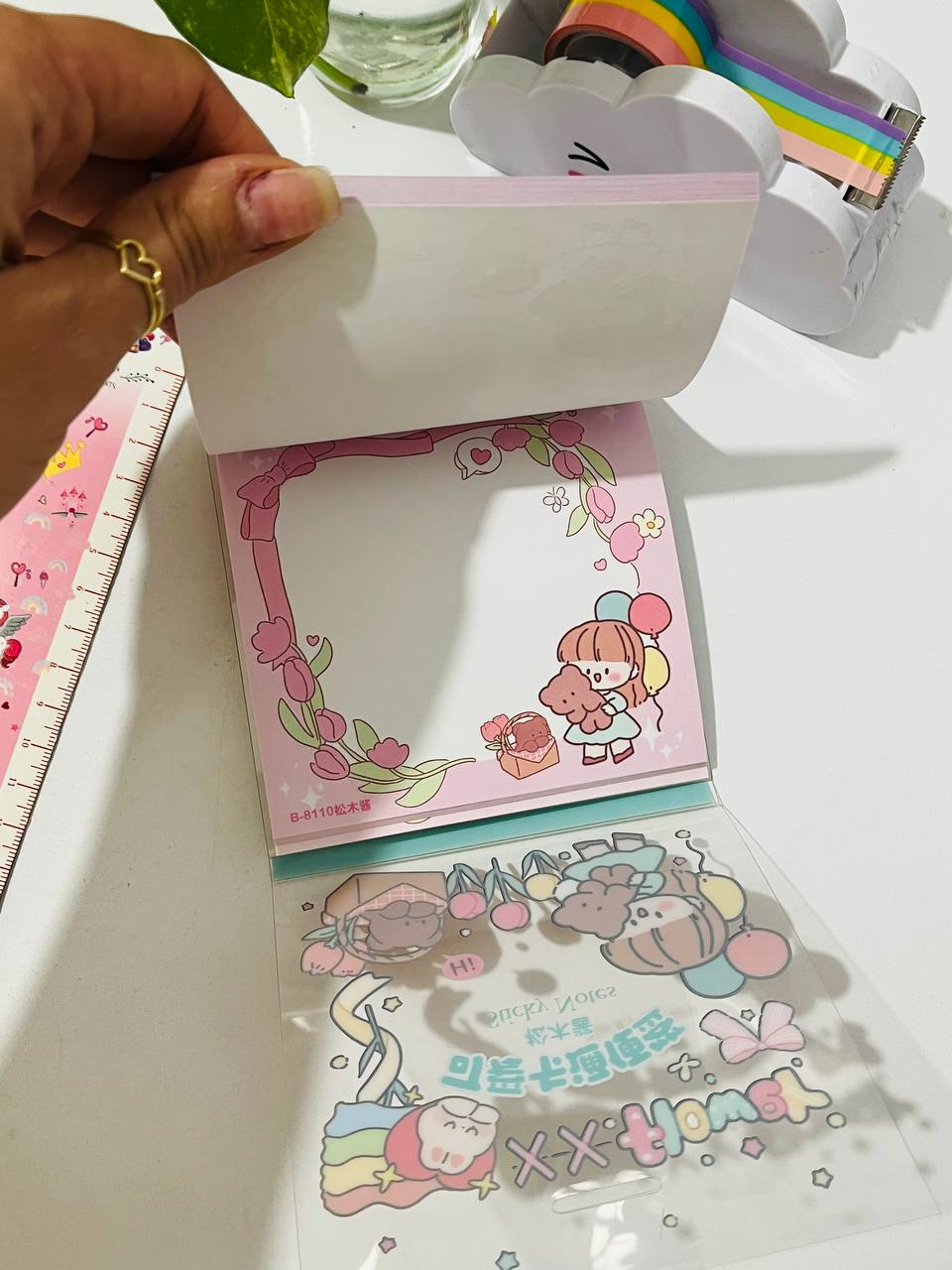 این محصول کیوت و خوشگل، نوت پد هست، برگه هایی واسه یادداشت، اما یه جلد طلقی شفاف بامزه هم دارن. صفحه ها حاشیه دار هستند و دو مدل حاشیه داره برگه هاش